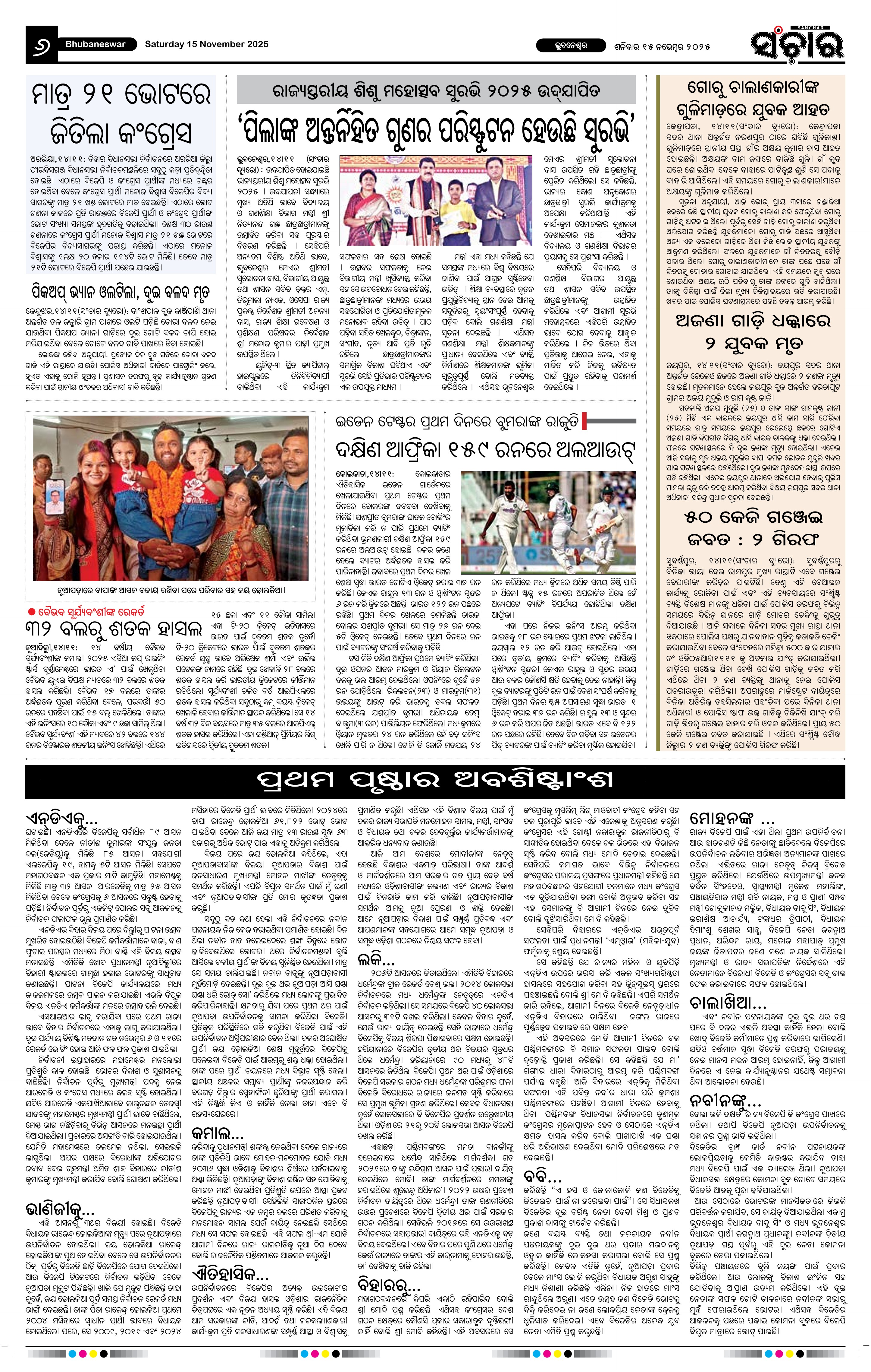 Sanchar 15-11-2025 Page: 6 November 15, 2025 Sanchar Epaper Today 4 5 6 7 Page 1Page 2Page 3Page 4Page 5Page 6Page 7Page 8Page 9Page 10Page 11Page 12 × Sanchar 15-11-2025 PDF Download PDF File << First << 6 >> Last >> Page no 1Page no 2Page no 3Page no 4Page no 5Page no 6Page no 7Page no 8Page no 9Page no 10Page no 11Page no 12