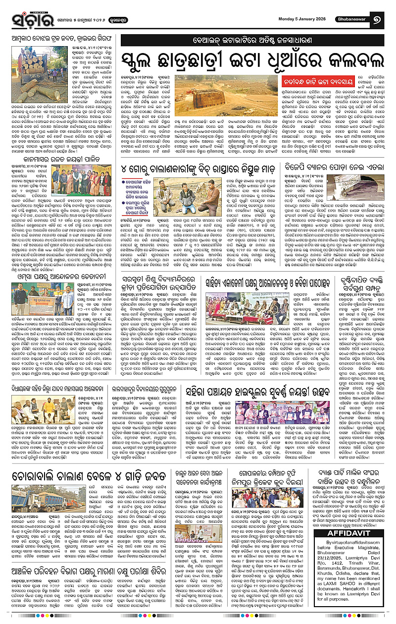 Sanchar 05-01-2026 Page: 7 January 05, 2026 Sanchar Epaper Today 5 6 7 8 Page 1Page 2Page 3Page 4Page 5Page 6Page 7Page 8Page 9Page 10Page 11Page 12 × Sanchar 05-01-2026 PDF Download PDF File << First << 7 >> Last >> Page no 1Page no 2Page no 3Page no 4Page no 5Page no 6Page no 7Page no 8Page no 9Page no 10Page no 11Page no 12
