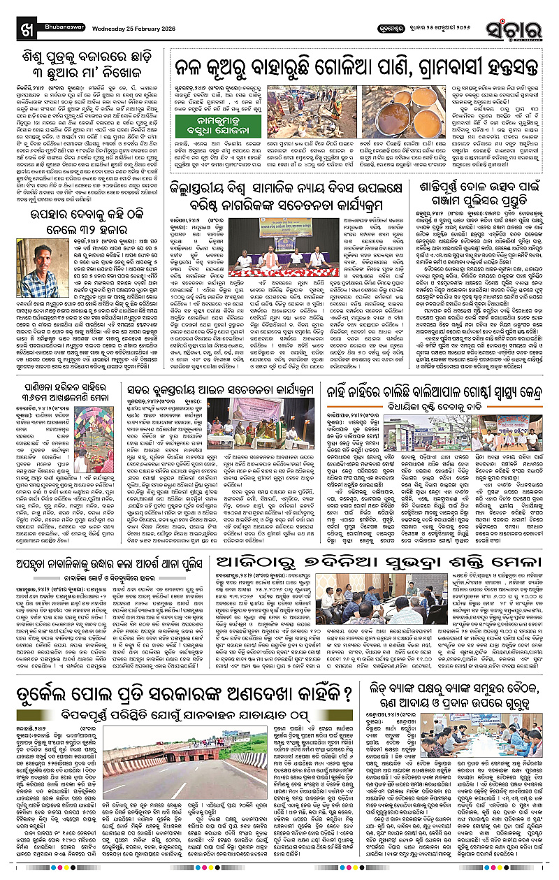 Sanchar 25-02-2026 Page: 10 February 25, 2026 Sanchar Epaper Today 8 9 10 11 Page 1Page 2Page 3Page 4Page 5Page 6Page 7Page 8Page 9Page 10Page 11Page 12 × Sanchar 25-02-2026 PDF Download PDF File << First << 10 >> Last >> Page no 1Page no 2Page no 3Page no 4Page no 5Page no 6Page no 7Page no 8Page no 9Page no 10Page no 11Page no 12