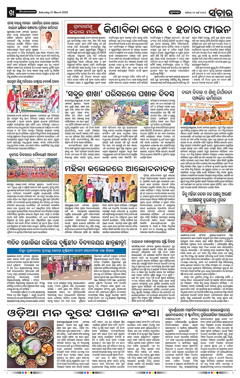 Sanchar 21-03-2026 Page: 10 March 21, 2026 Sanchar Epaper Today 8 9 10 11 Page 1Page 2Page 3Page 4Page 5Page 6Page 7Page 8Page 9Page 10Page 11Page 12 × Sanchar 21-03-2026 PDF Download PDF File << First << 10 >> Last >> Page no 1Page no 2Page no 3Page no 4Page no 5Page no 6Page no 7Page no 8Page no 9Page no 10Page no 11Page no 12