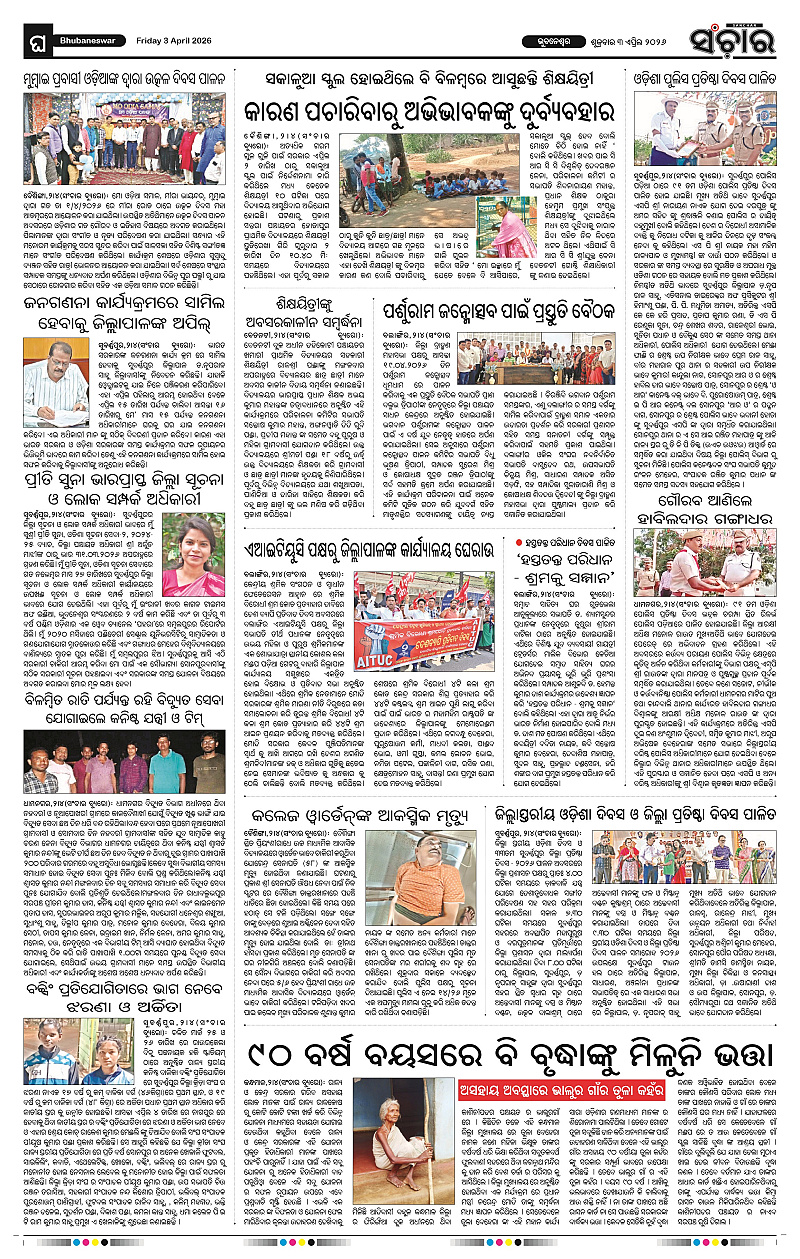 Sanchar 03-04-2026 Page: 12 April 03, 2026 Sanchar Epaper Today 9 10 11 12 Page 1Page 2Page 3Page 4Page 5Page 6Page 7Page 8Page 9Page 10Page 11Page 12 × Sanchar 03-04-2026 PDF Download PDF File << First << 12 >> Last >> Page no 1Page no 2Page no 3Page no 4Page no 5Page no 6Page no 7Page no 8Page no 9Page no 10Page no 11Page no 12