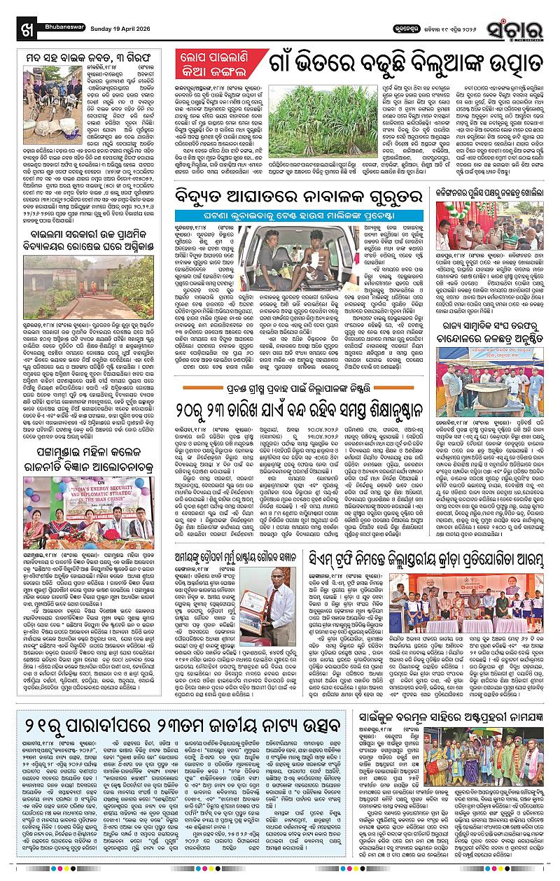 Sanchar 19-04-2026 Page: 10 April 19, 2026 Sanchar Epaper Today 8 9 10 11 Page 1Page 2Page 3Page 4Page 5Page 6Page 7Page 8Page 9Page 10Page 11Page 12 × Sanchar 19-04-2026 PDF Download PDF File << First << 10 >> Last >> Page no 1Page no 2Page no 3Page no 4Page no 5Page no 6Page no 7Page no 8Page no 9Page no 10Page no 11Page no 12